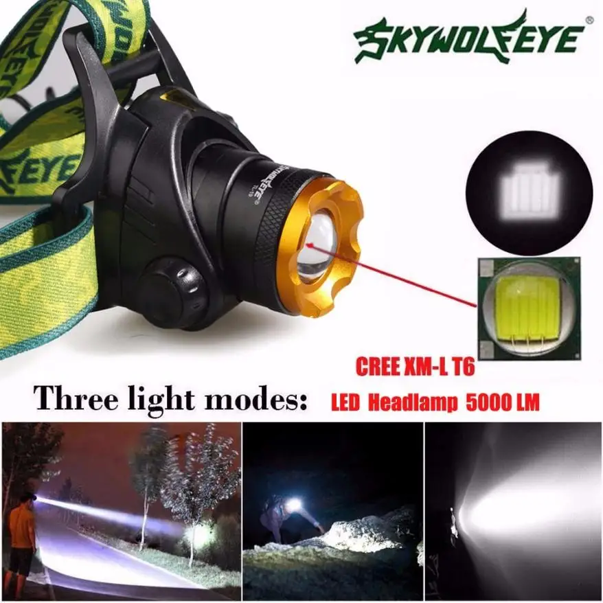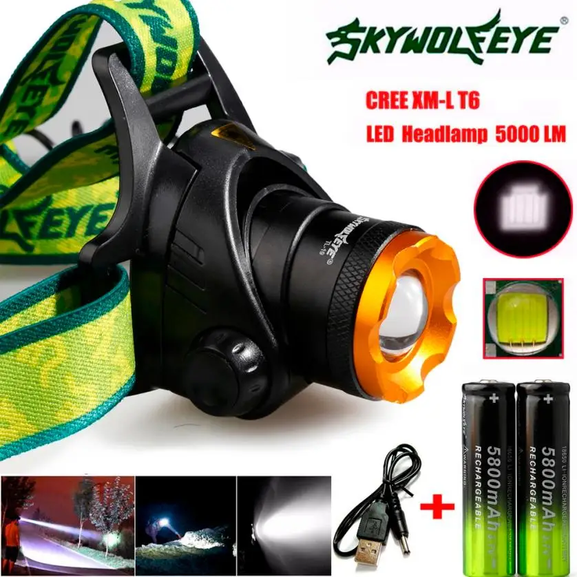5000LM XM-L T6 Headlamp Zoomable Headlight Head Light LED Rechargeable USB+18650 5800mAh Battery Tr