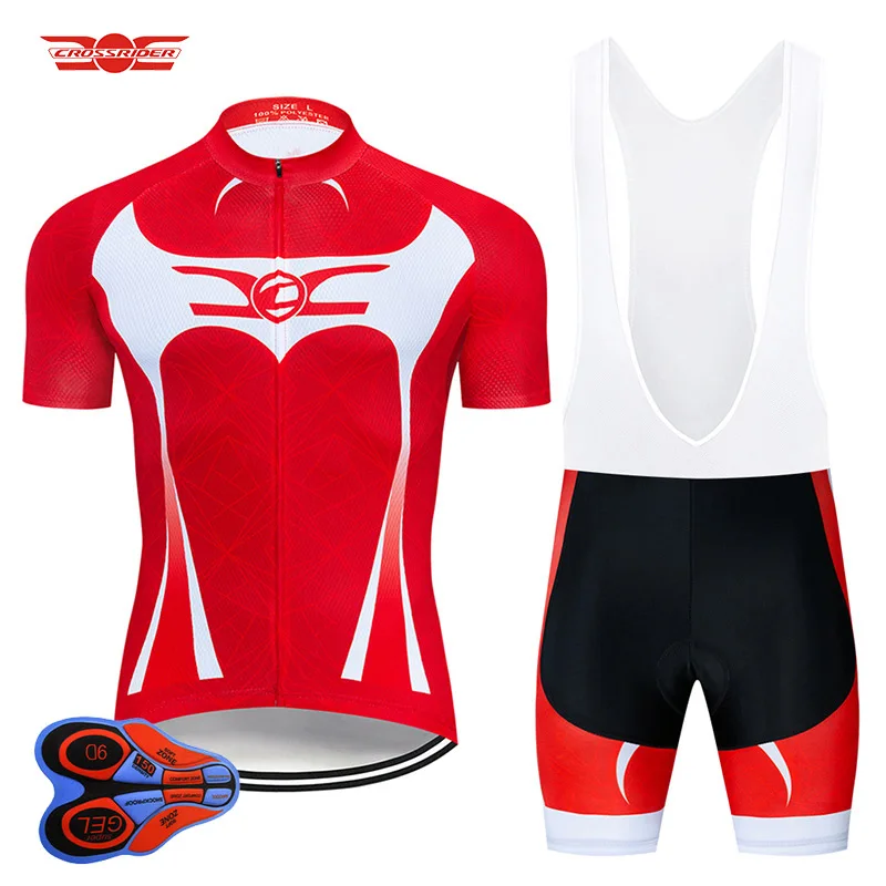 HOT Sale Crossrider 2020 Red Cycling Jersey 9D bib Set MTB Uniform Bike Clothing Breathable Bicycle Clothes